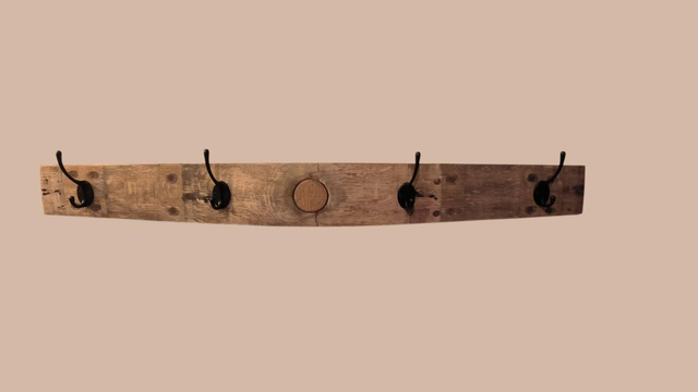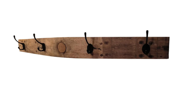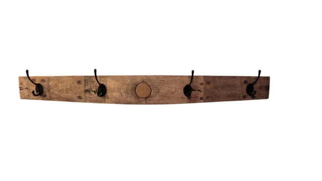 Patère Porte manteau 4 crochets, fabriquée avec une douve de fût de chêne.